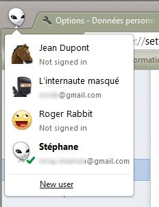 Désormais, chacun peut personnaliser sa session et (à condition de se connecter à son compte Google) synchroniser ses favoris, extensions, applications Web, etc. Un petit avatar modifiable, en haut à gauche de la fenêtre, indique laquelle est active. Attention : les sessions ne sont pas protégées par mot de passe, et rien n’empêche donc quelqu’un d’utiliser une autre que la sienne.