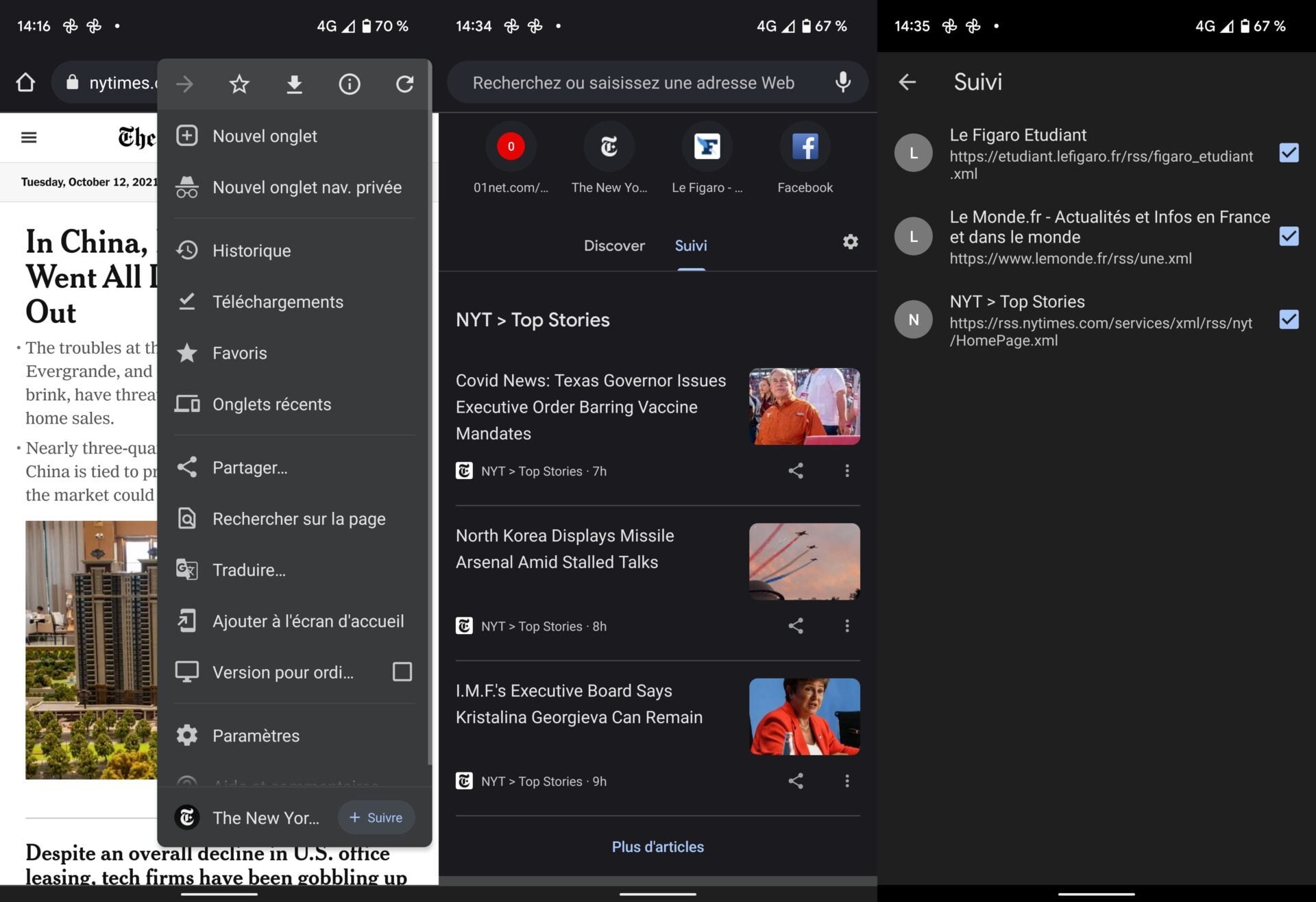 Si le bouton s’affiche bien et peut s’activer sur les sites consultés, la fonction, qui est encore au stade expérimental, ne semble fonctionner que sur certains sites Web. C’est le cas, par exemple, du New York Times. Lorsque vous activez l’option Suivre en arrivant sur un site Web, elle se charge d’aller récupérer elle-même l’URL du flux RSS associé.