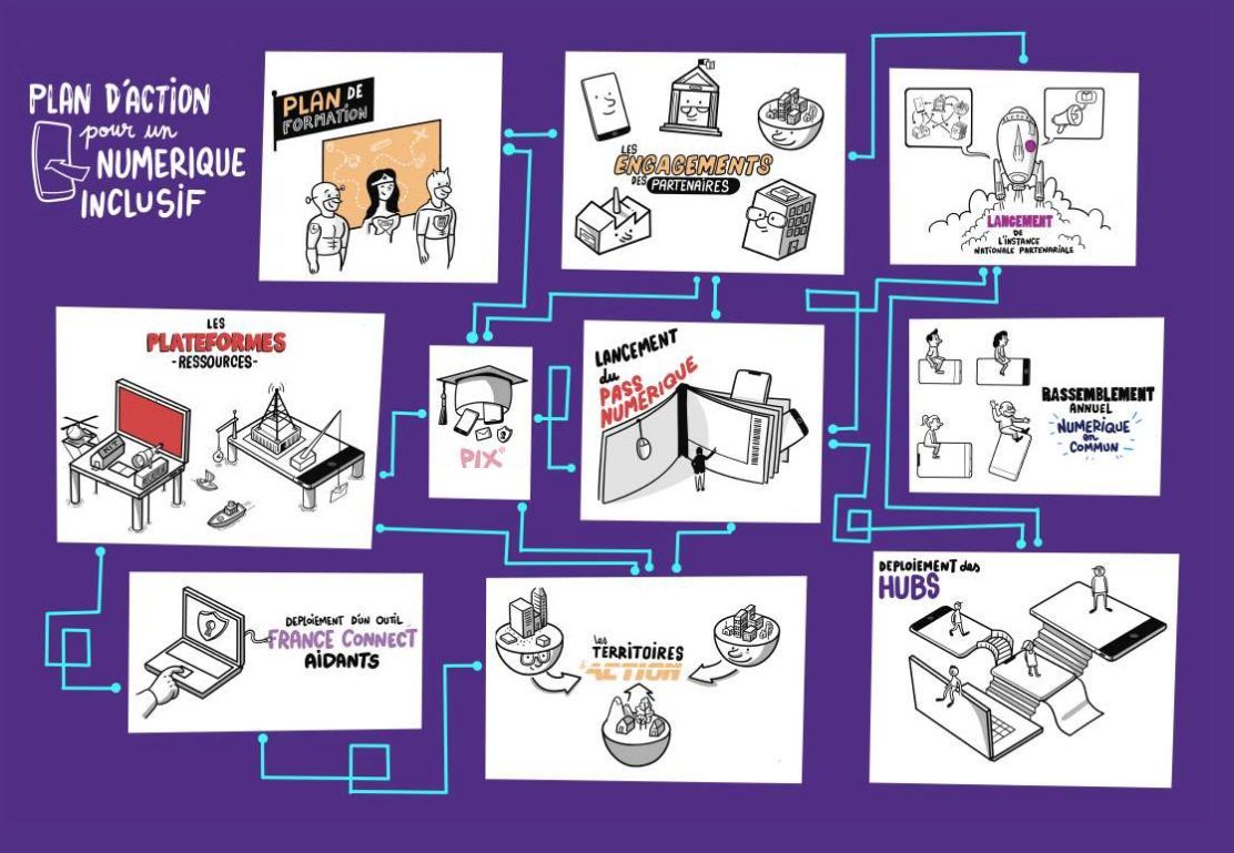 50 millions. C’est le budget débloqué pour lancer les « pass numériques ». Mesure phare de ce plan d’action national, ce dispositif est une sorte de chéquier délivré aux publics prioritaires par les aidants numériques qui permet de suivre entre 10 et 20 heures de formation à raison de 5 à 10 ateliers labellisés. Le pass numérique a pour objectif l’autonomie de navigation sur le Web. Pour soutenir ce dispositif, l’État mobilise 10 millions d’euros. 40 millions d’euros supplémentaires devraient être débloqués par le secteur privé et les collectivités territoriales. En amont, un outil clé-en-main a été créé, le « kit d’inclusion numérique » à destination des aidants numériques pour « détecter » les publics en difficulté sur Internet à qui remettre ledit pass. Un diagnostic qui pourra aussi être déterminé via le service public en ligne « Pix », un parcours pédagogique d’évaluation et de renforcement des compétences numériques. Cette plate-forme gratuite est accessible à tous ceux qui veulent améliorer leur agilité numérique et combler leurs lacunes.