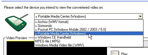 profils pré-définis tels que Pocket PC, Portable Media Center, Archos, etc.