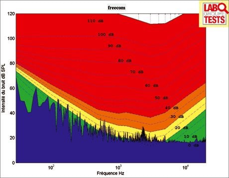 par un oscilloscope. Les mesures sont comparées à la courbe qui représente la sensibilité de l’oreille humaine aux différentes fréquences du spectre sonore audible, à l’aide d’un logiciel spécialisé Matlab, afin