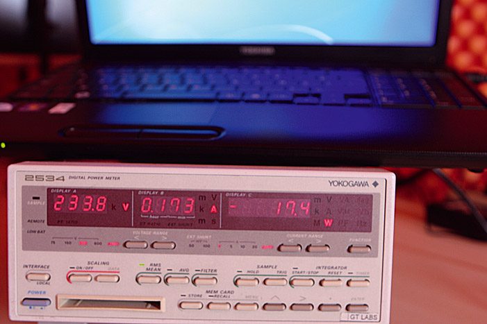 A l’aide d’un wattmètre, nous avons mesuré la consommation de chaque machine au repos ? Windows lancé, mais sans activité ? et à pleine charge. Les différences sont loin d’être négligeables : dans notre sélection, l’Acer Aspire 5734Z ne consomme que 40 W à plein régime, contre plus de 80 W pour le Medion Akoya P66252.