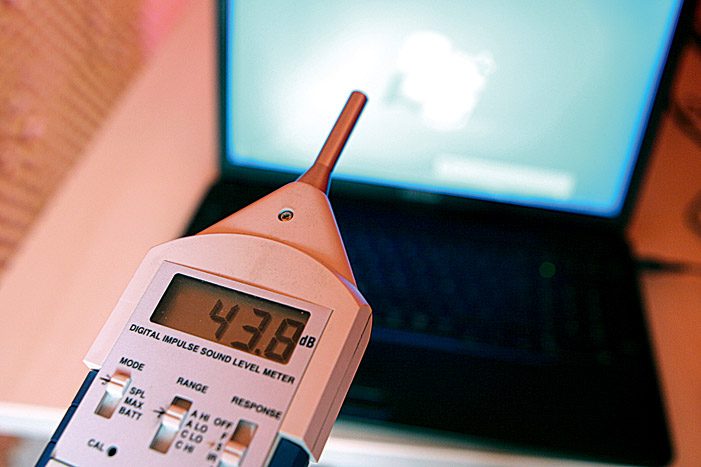 Deux mesures de niveau sonore et de chaleur dégagée sont réalisées, au repos et à pleine charge. La mesure du bruit est réalisée en salle sourde, à l’aide d’un sonomètre placé à 50 cm de la machine. A l’aide d’une caméra thermique, nous mesurons ensuite la température du portable sur le dessus, au niveau du repose-paumes et en dessous du boîtier.