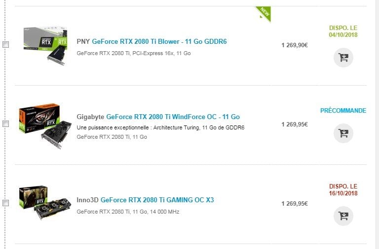 L’autre solution est de regarder sur les différents sites marchands car plusieurs constructeurs de cartes graphiques ont annoncé leurs GeForce RTX 2080 Ti (MSI, Gigabyte, Zotac, Asus, PNY et EVGA).