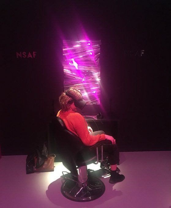 Clou de l’exposition : le laboratoire neuroscosmétique « NeuroSpeculative AfroFeminism » créé par Hyphen-Labs, un groupe de femmes de couleur ingénieures, scientifiques, architectes et artistes. Elles proposent un magasin futuriste, qui vend des accessoires pour se prémunir de la violation de la vie privée ou des violences policières. Le client peut prendre les traits d’une femme noire en enfilant un casque de réalité virtuelle. Et si les femmes noires devenaient la norme dans le monde numérique de demain ?