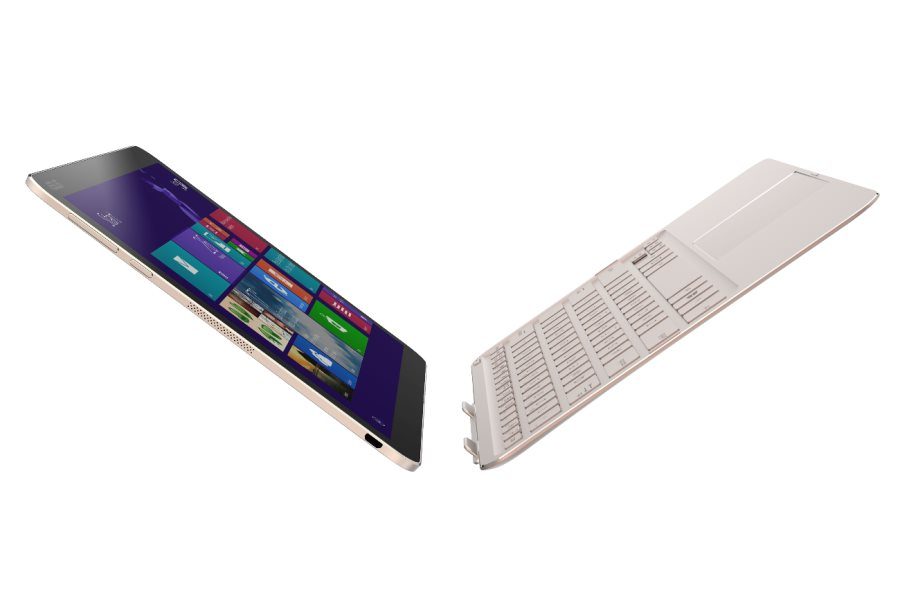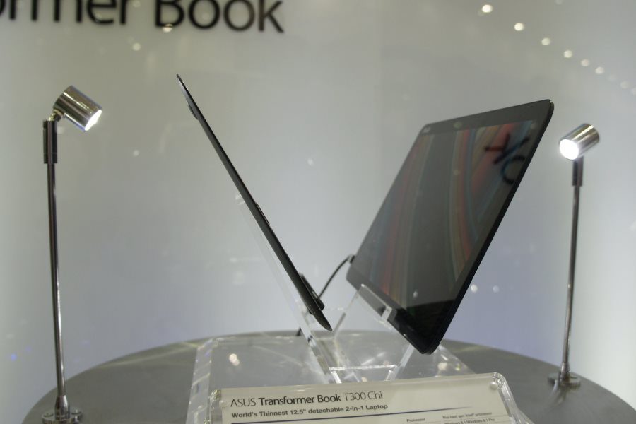 Le T300 Chi est le portable hybride le plus fin du moment (14 mm au point le plus épais avec le clavier). La tablette est équipée d’un processeur Core M, qui ne nécessite aucune ventilation, et d’un écran IPS de 12,5 pouces de diagonale, offrant une définition de 2560 x 1440 pixels. On y trouve jusqu’à 4 Go de mémoire vive, une connexion 4G, et un système d’exploitation Windows 8.1. Attention, l’appareil ne devrait arriver qu’en fin d’année dans le meilleur des cas. Certains officiels d’Asus étaient même surpris que son écran fonctionne sur le stand du fabricant au Computex. On est donc encore loin de la version finale, mais quelle finesse !