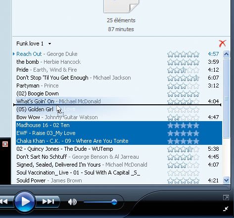 playlist.2 Pour changer l’ordre des morceaux, faites-les glisser vers le haut ou le bas, individuellement ou par groupes.
