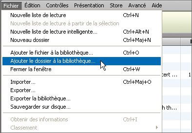 1 Dans le menu Fichier, choisissez Ajouter le dossier à la bibliothèque, indiquez les dossiers contenant les fichiers que vous voulez ajouter à la liste.