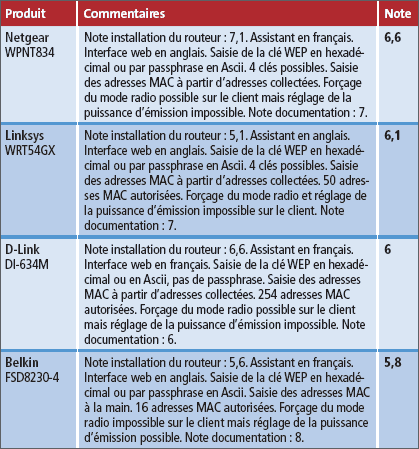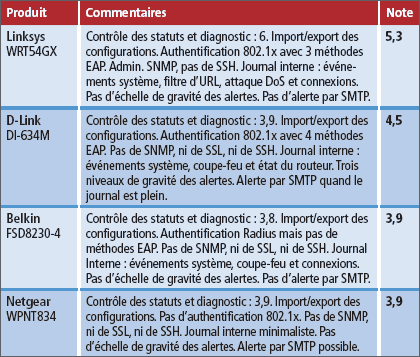 chiffrement SSL et prend en charge SNMP. La gestion des configurations et des versions logicielles est limitée : on ne peut sauvegarder qu’une seule configuration et un seul microcode. Tous sont capables degérer l’authentification WEP, mais