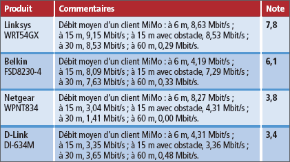 Les trois autres acceptent certes les clients MiMo et 802.11g nativement, mais n’offrent qu’un mode de compatibilité g pour ceux estampillés ‘ 108 ‘. Côté performances, les débits agrégés relevés sont compris entre 18 et