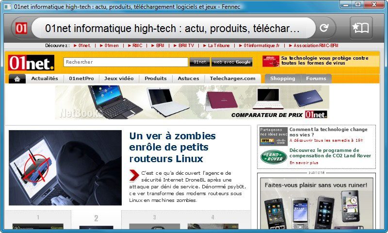 (1) Nous avons utilisé la version Windows Vista de la bêta 1 de Fennec pour réaliser notre test.