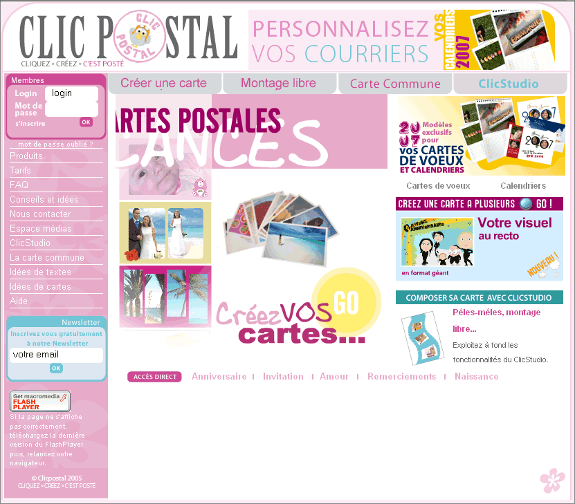 A partir de vos photos ou d’une bibliothèque d’images, ce site permet de réaliser divers modèles de cartes à envoyer en toutes occasions. Deux formules au choix : vous recevez à domicile les cartes commandées, ou bien, option