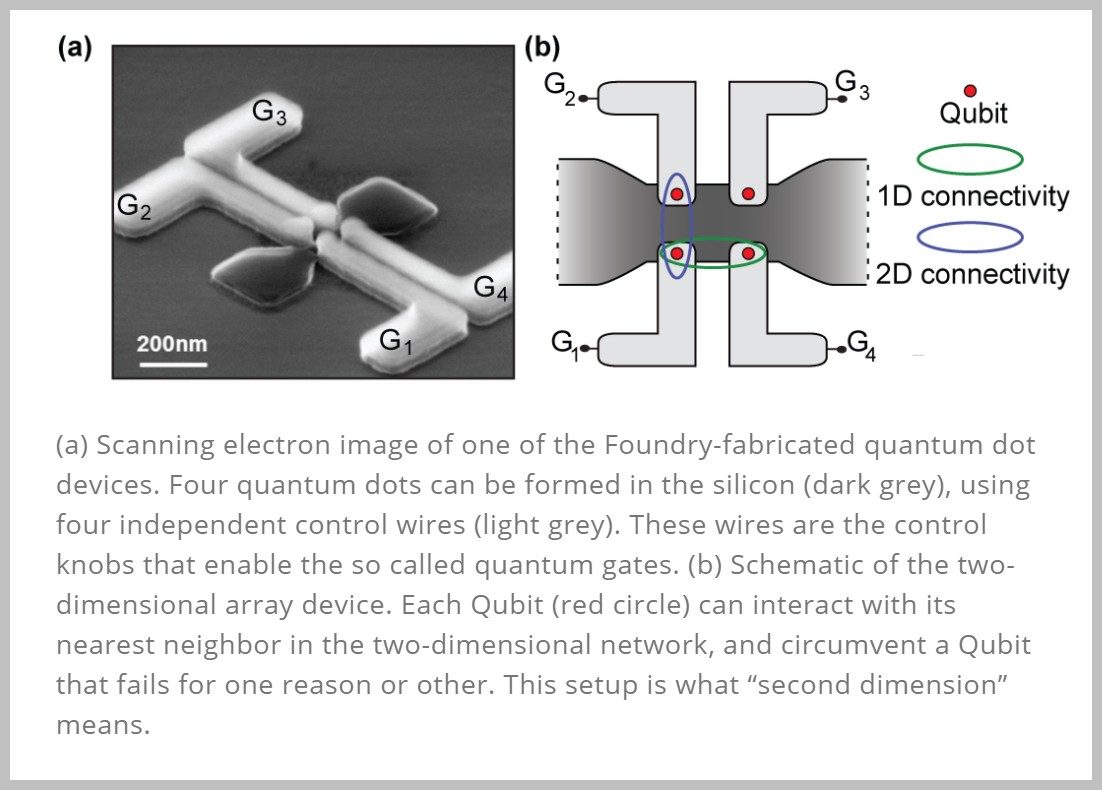 Cette recherche donne également l’occasion de se réjouir à titre national, car elle s’est faite en partenariat avec le laboratoire français CEA-Leti. Ce dernier a fourni le wafer en silicium hébergeant les « quantum dots ». Ces wafers ont une taille de 300 mm et reposent sur des processus industriels classiques. Cette technologie, qui existe maintenant depuis quelques années, a été développée dans le cadre du projet de recherche européen Mosquito.