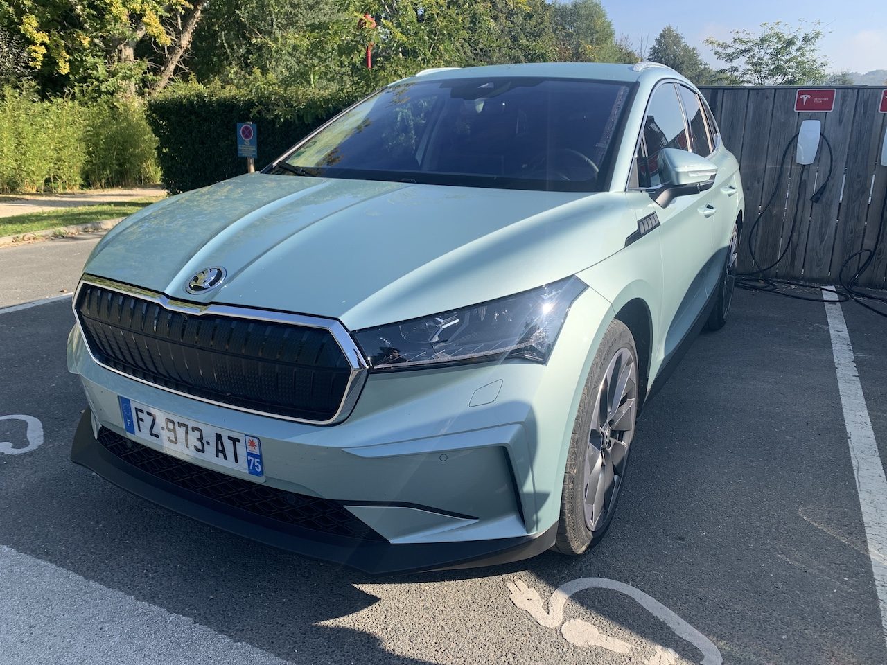 Notre version : Enyaq 80, soit la batterie de 82 kWh, la plus grande capacité disponible sur ce modèle. L’autonomie estimée est de 534 km (WLTP). Comme souvent la réalité est un peu plus cruelle et dépend en partie de votre propension à rouler sur autoroute.