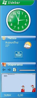 Entièrement personnalisable, la Desktop Sidebar est un utilitaire agréable et pratique pour gagner du temps. Qu’on la place à droite ou à gauche du Bureau, cette barre d’outils permet de connaître en un instant les cours de la Bourse, l’heure ou la météo, de lire ses mails, de tchater sur Messenger ou encore de piloter WinAmp. Configurée par défaut avec une vingtaine de fonctions de base, elle peut être enrichie de 300 outils supplémentaires, rapatriables depuis le site de l’éditeur.