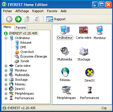 Quelles sont les spécificités du circuit graphique, du processeur ou de la mémoire vive de votre PC ? Vous le saurez, sans ouvrir votre boîtier, avec ce logiciel qui vous fournira une quantité de données techniques. Un must pour mettre à jour les pilotes ou le Bios sans se tromper. Everest délivre aussi des informations utiles aux fans d’overcloking (l’augmentation de la fréquence du processeur pour gagner en performance) en communiquant par exemple la version précise du processeur, les temps de latence des mémoires et la température des divers composants.