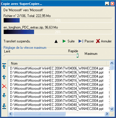 Cet utilitaire malin remplace avantageusement la fonction de copie de Windows, en affichant une fenêtre permettant de suspendre le transfert et de passer directement au fichier suivant. D’autres réglages, plus évolués, permettent d’accélérer ou de ralentir la vitesse de copie (pour ne pas monopoliser trop de ressources) et même d’ajouter ou de supprimer des fichiers à copier.