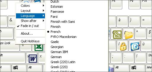 Vous souhaitez lancer des logiciels ou ouvrir des documents plus rapidement ? Adoptez HotKeys. Ce programme simple d’emploi vous permettra de créer autant de raccourcis clavier qu’il y a de touches sur le clavier. Pour configurer le logiciel en français, pressez la touche Windows et maintenez?”la enfoncée. Placez le curseur sur une zone vierge de la fenêtre qui apparaît et pressez le bouton droit. Dans le menu qui s’affiche, cliquez sur Language puis French.