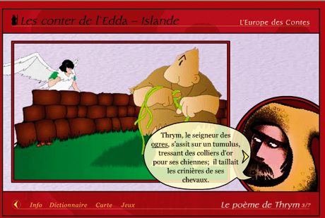 personnage fétiche. C’est un korrigan, personnage mythologique breton, qui emmène les lecteurs à la découverte de l’histoire de la cité engloutie d’Ys. Le récit se découpe en petites scènes : une fois le texte lu, on clique pour accéder à la