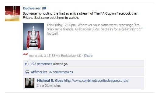 C’est la marque de bière américaine Budweiser, également sponsor de la compétition, qui est à l’origine de cette initiative. La rencontre sera diffusée sur sa page Facebook. L’accès sera gratuit, mais les internautes devront au préalable cliquer sur le bouton « J’aime » de la page Budweiser (et accessoirement déclarer avoir plus de 18 ans).