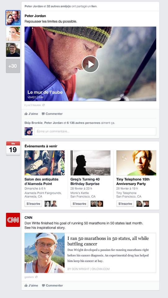 Le lifting graphique donne la part belle aux contenus: des photos plus grandes, des liens mieux mis en avant ou encore une intégration renforcée de services extérieurs (Pinterest dans l’exemple présenté jeudi). “Plus riche et plus beau”, a résumé Julie Zhuo, responsable du design de la société.