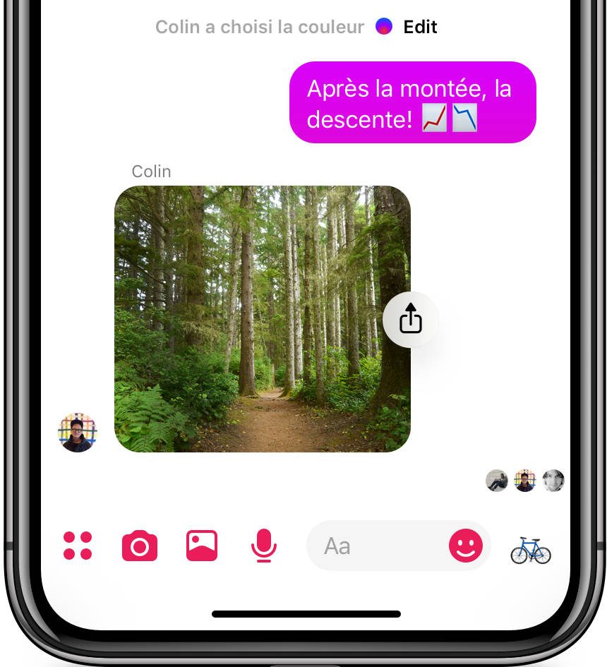 Celles-ci sont moins proéminentes, pour éviter les envois involontaires ou, simplement, les mauvaises manipulations. Enfin, Facebook a ajouté une fonction de personnalisation de la fenêtre de discussion permettant, par exemple, de faire varier la couleur des bulles de discussion lorsque l’on fait défiler la conversation de haut en bas.