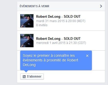 Il suffit pour cela de se rendre dans la rubrique événements dans votre compte et de cliquer sur le bouton « S’abonner » en dessous de chaque page que vous aimez déjà. Vous pouvez aussi vous abonner directement sur les pages officielles d’un lieu, d’un artiste ou d’un salon dont vous ne suivez pas l’actualité.