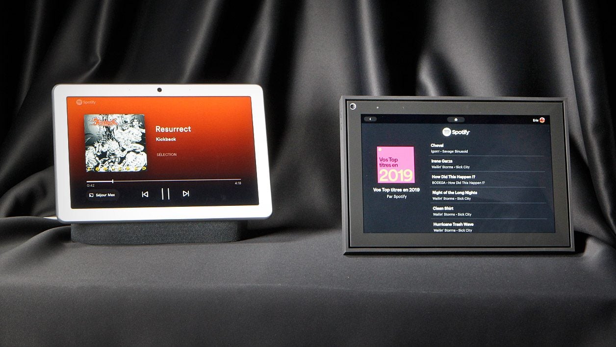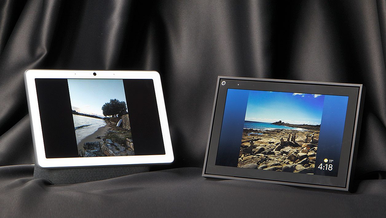 Ces deux appareils, à la dalle de taille confortable, ont sur le papier de quoi faire office d’écran d’appoint, dans la cuisine par exemple. Mais en la matière, il n’y a même pas de match : le Nest Hub Max écrase son concurrent.