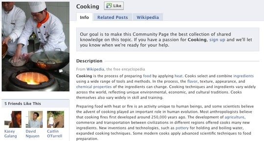 « Les pages communautés sont toujours en bêta, mais notre but sur le long terme est d’en faire la meilleure collection de savoirs partagés sur un sujet. Nous commençons par montrer les informations de Wikipedia, mais nous recherchons également des gens passionnés sur l’un de ces sujets pour s’inscrire et contribuer à la page. Nous vous ferons savoir lorsque tout sera prêt pour accueillir votre aide ».