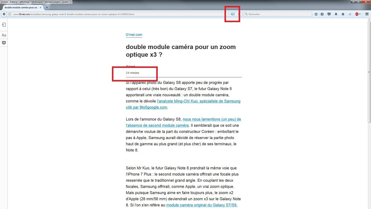 Enfin, le mode lecture de Firefox estime désormais le temps de lecture approximatif d’une page.