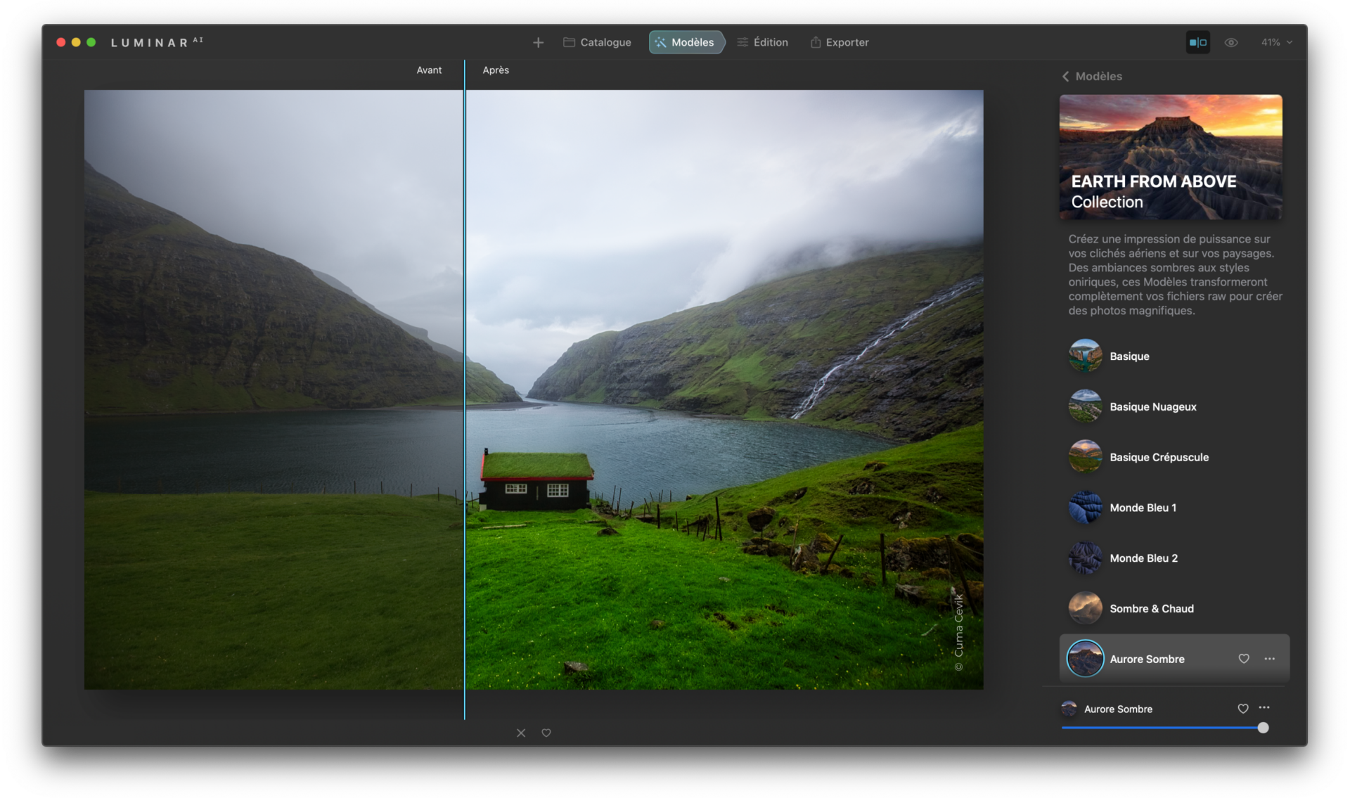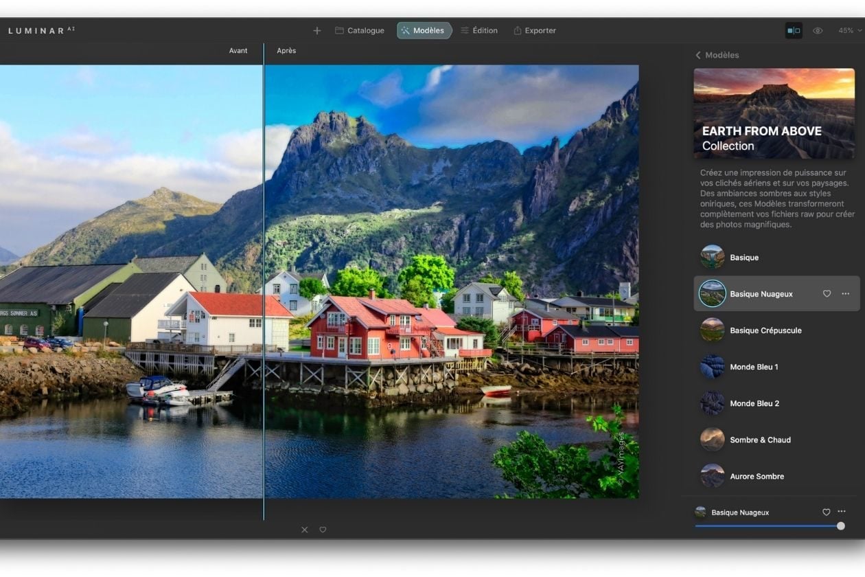 Car Luminar AI a une force : un recours à l’intelligence artificielle qui analyse le contenu des images pour suggérer les meilleures modifications à apporter. Qu’il s’agisse d’un paysage ou d’un portrait, il vous permet de modifier avec simplicité la couleur et la météo d’un ciel, l’éclairage naturel d’une scène, ou encore les moindres détails d’un visage. Les modèles prédéfinis peuvent être modifiés et personnalisés lorsque vous maîtrisez davantage les nombreux réglages que propose Luminar AI. À l’occasion des French Days, vous pouvez profiter de 15 à 20% de remise sur Luminar AI pour Windows et macOS, pour un ou deux ordinateurs. En plus, le pack « La Terre vue du dessus » du photographe professionnel Armand Sarlangue, ambassadeur de Luminar AI, est à 10 euros au lieu de 19 euros habituellement.