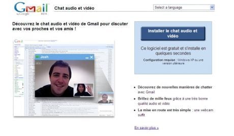 prochains jours.Le chat audio et vidéo est disponible pour les navigateurs compatibles avec la dernière version de Gmail, à savoir Google Chrome, Firefox 2.0 et plus, Internet Explorer 7.0, et Safari 3.0.