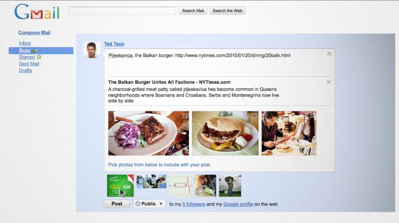 Buzz est également ouvert à d’autres services Web : il sera possible d’ajouter à votre fil d’actualités Buzz des contenus en provenance de Flickr et Picasa Web albums, Google Reader et… Twitter. A noter, en revanche, que cela ne marchera que dans un sens : impossible d’utiliser Google Buzz pour publier sur Twitter, par exemple.