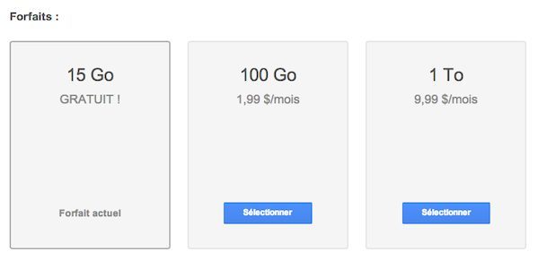 Google conserve aussi ses offres haut de gamme, dont les prix ont aussi fondu, mais qui restent onéreuses : comptez 99,99 $ (72,20euros) pour 10 To, 199,99 dollars (144,40 euros) pour 20 To et 299,99 $ (216,61 euros) pour…. 30 To !