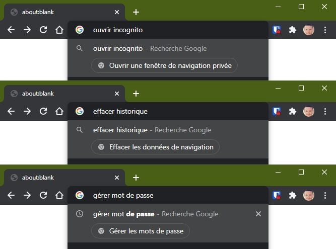 - Ouvrir une fenêtre de navigation privée (ouvrir incognito, démarrer, ouvrir navigation privée, etc.)