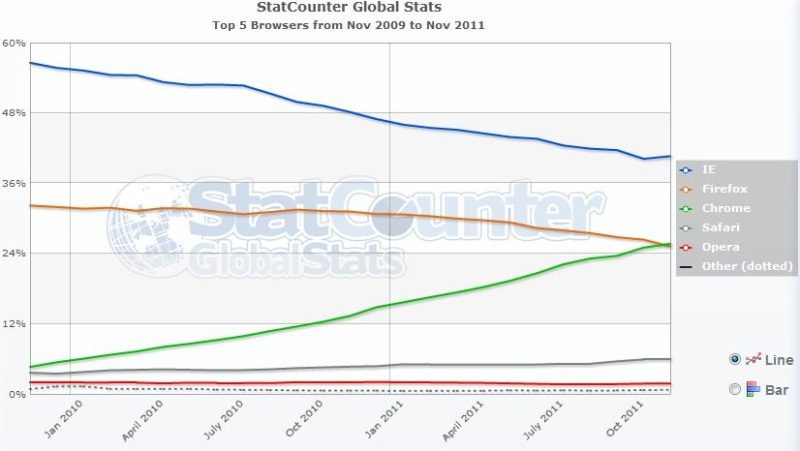 Qui de Google Chrome ou de Firefox est le navigateur le plus utilisé dans le monde ? La réponse dépend des sociétés de mesures d’audience. NetApplications et StatCounter ont chacune publié leurs chiffres pour le mois de novembre 2011. Et les résultats divergent.