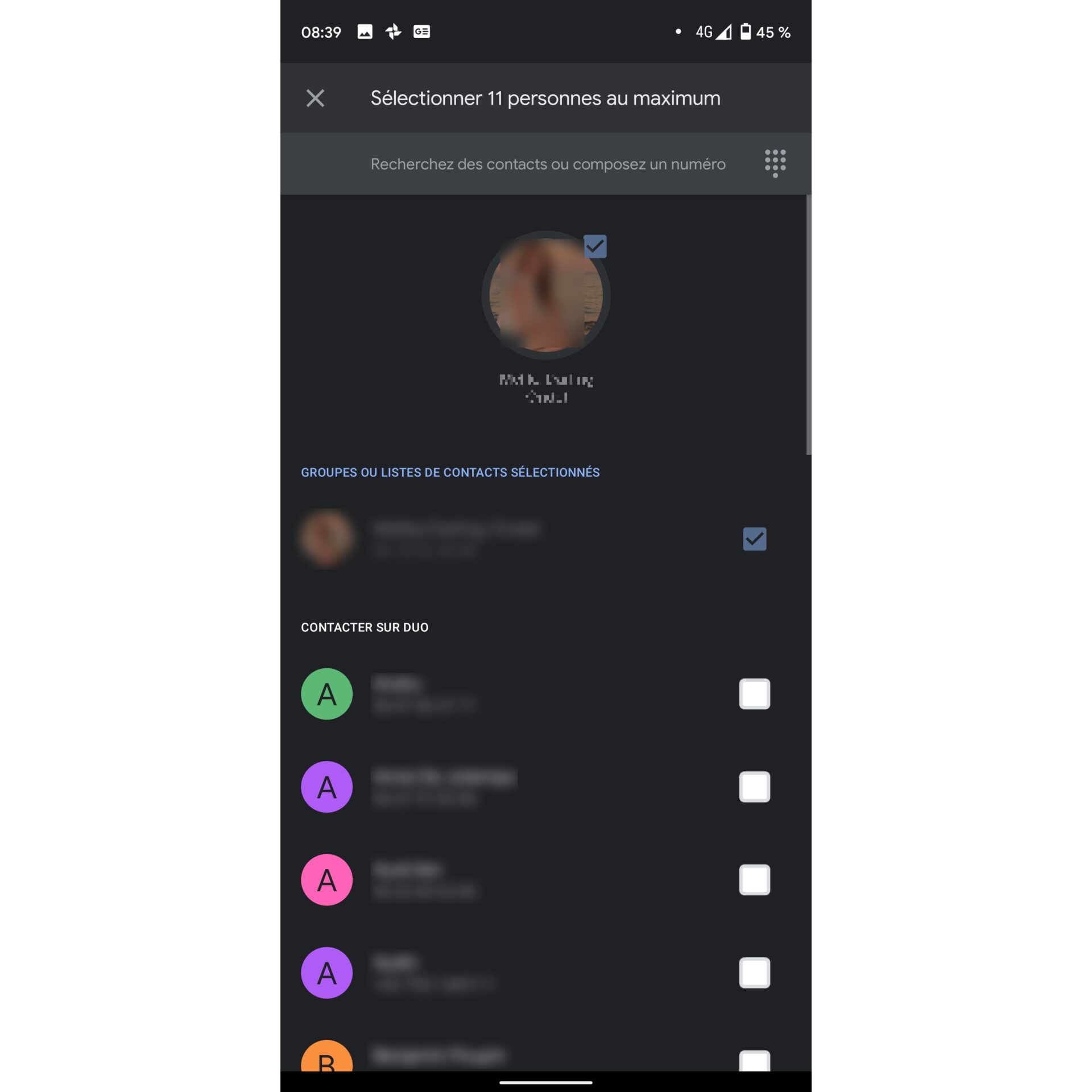 Il suffit de sélectionner le premier correspondant, puis de se rendre dans les options pour y Créer un groupe, l’application autorisant alors l’ajout de 11 personnes supplémentaires.