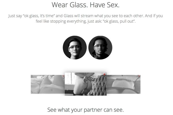 Les créateurs du projet se sont posés la question : « Comment peut-on rendre le sexe encore plus incroyable avec les Google Glass ? », voilà le résultat. Et non, rassurez-vous, Google ne leur a pas demandé de le faire. « Nous l’avons juste fait. Parce que. », s’expliquent-ils sur leur site.
