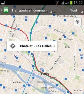 L’application propose un nouveau calque d’affichage pour les transports en commun. Les stations sont plus clairement représentées et il est possible de n’afficher que la carte correspondant au mode de transport (train, métro ou tramway) que l’on aura choisi.