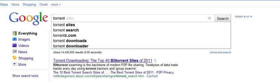 Au mois de décembre 2010, le géant américain faisait savoir qu’il allait mettre en place certaines mesures pour lutter contre le piratage. Il promettait entre autres, de rendre plus difficile l’accès aux fichiers illégaux en ne suggérant plus de mots liés à la contrefaçon dans sa saisie automatique. Ainsi, lorsque l’internaute commence à taper les premières lettres de « torrent », ce terme ne remonte plus dans les résultats.