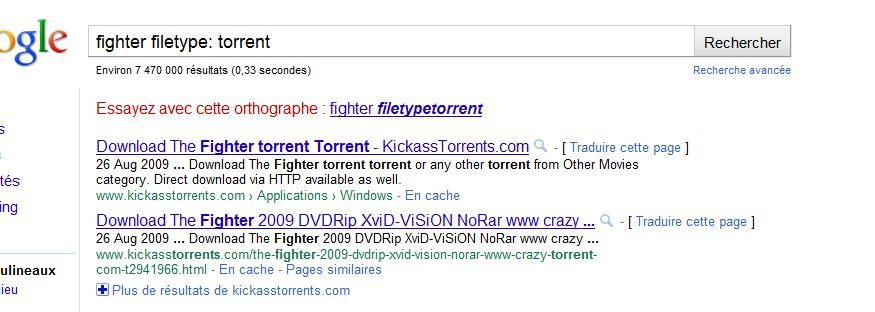 Cette précaution est de la poudre aux yeux car, une fois « torrent » complètement saisi, Google propose comme associations « sites, search, dowload, downloader ». Des mots tout à fait légaux mais, qui associés à « torrent », permettent de se rendre sur des annuaires de fichiers pirates.