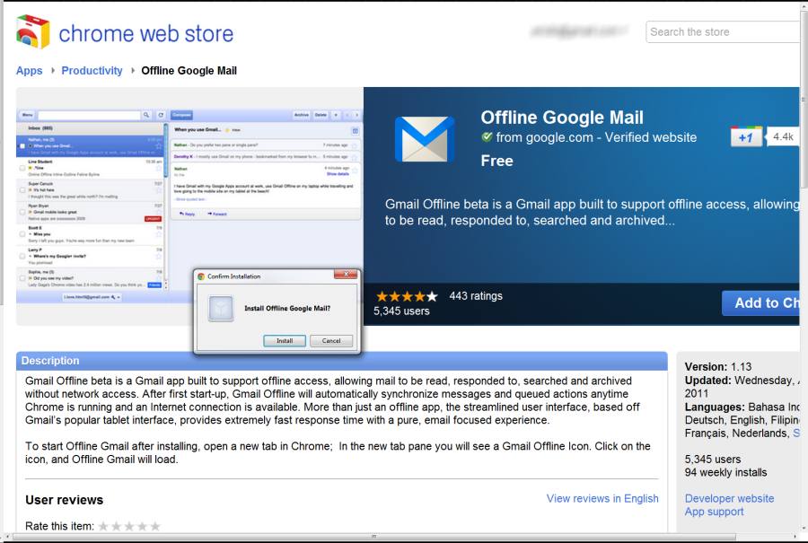 C’est désormais chose faite, tout au moins pour Gmail. Google propose dans le Chrome Web Store une application permettant d’accéder à sa messagerie hors ligne. Petite surprise : elle utilise l’interface simplifiée de Gmail pour les tablettes. Une fois installée, l’appli récupère les messages les plus récents et permet ensuite de lire et de rédiger des e-mails sans être connecté à Internet.