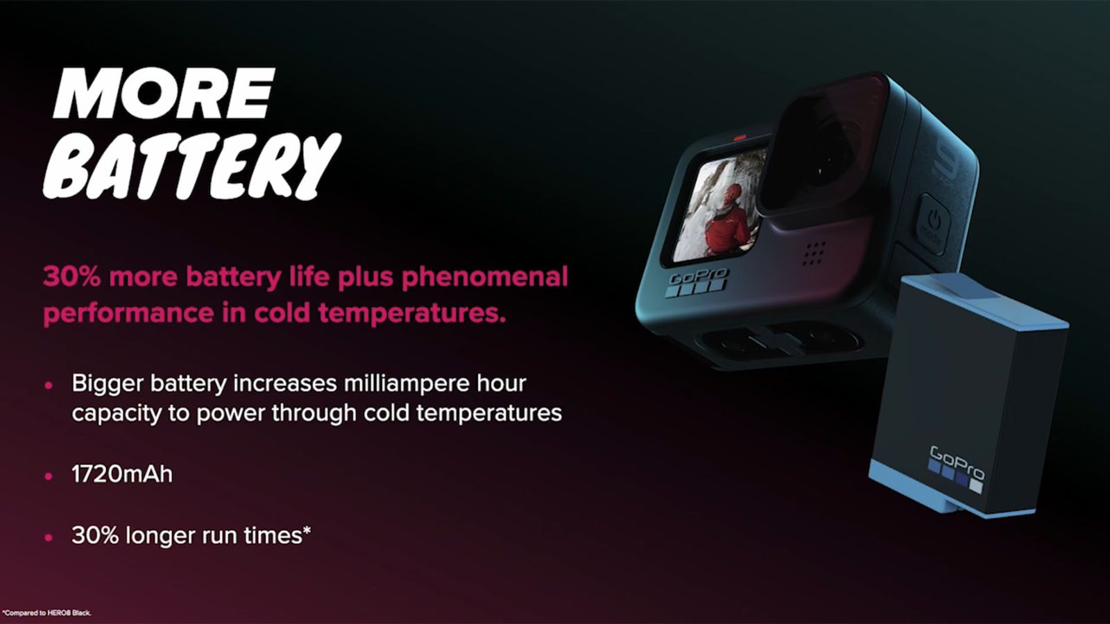 Ce choix paraît pertinent puisque l’endurance de la batterie est, plus encore que la qualité d’image, l’axe d’amélioration le plus souvent cité par les utilisateurs des Hero. GoPro est donc bien à l’écoute.