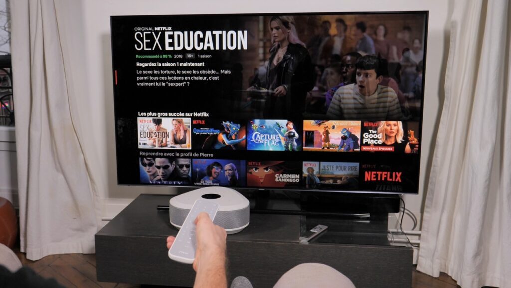 Passons au son maintenant. Sans être de l’acabit des onéreuses enceintes Devialet, le Freebox Player se tire très bien de la tâche qui lui est confiée. Il assure un son détaillé, porte des basses amples, bien présentes, mais pas écrasantes. Les médiums sont nets et bien distincts, ce qui fait que les voix sont toujours lisibles, équilibrées. Les aigus pourraient sans doute être plus marqués… mais rappelons-nous que cette enceinte demeure relativement compacte.