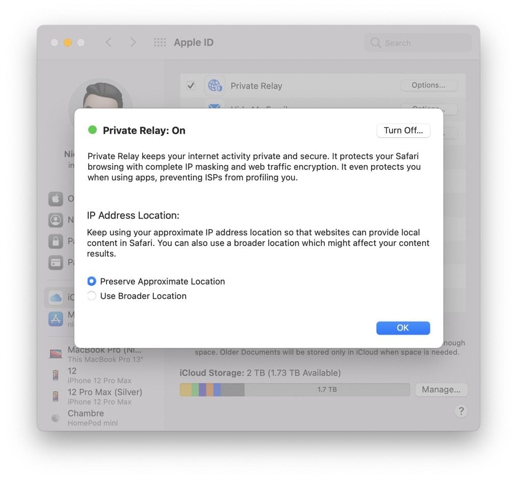 Par ailleurs, contrairement à un VPN qui ralentit effectivement la connexion en vous attribuant des adresses IP d’autres pays, Privacy Relay vous sert des adresses de votre région ou pays. Ce qui limite les risques de ralentissement.