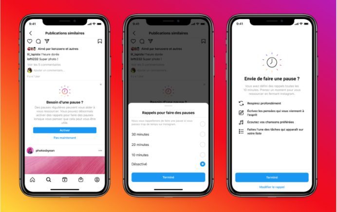 Instagram vient également de dévoiler l’arrivée de Take a break, littéralement “Faire une pause”, une nouvelle fonctionnalité imaginée pour les aider à prendre conscience de l’utilisation qu’ils font de la plate-forme. Lorsqu’ils passeront trop de temps dessus, Instagram leur affichera un message leur proposant de faire une pause, et suggérera d’en programmer.
