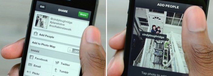 L’intégration d’Instagram dans l’univers de Facebook se poursuit. L’application a annoncé, le 2 mai 2013, que les utilisateurs peuvent désormais taguer leurs amis sur les photos qu’ils publient. Elles apparaîtront dans une section appelée Photos de vous.