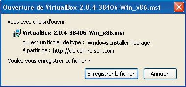 Double-cliquez sur l’icône VirtualBox-2.0.4-38406-Win_x86.msi. L’installation se lance alors.