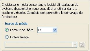 Insérez votre CD ou DVD contenant le système d’exploitation à installer, ou indiquez l’emplacement sur votre disque dur du fichier Iso contenant le système, et lancez votre système virtuel en cliquant sur la flèche verte. L’assistant