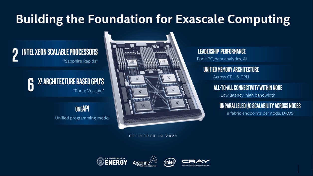 Ponte Vecchio est le nom de code de la première grosse plate-forme à embarquer des unités Xe HPC. Elle trouvera sa place dans le super calculateur Aurora d’Intel à venir en 2021. Une structure qui sera composée de plusieurs « lames » de Ponte Vecchio.